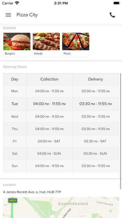 . 1500 - 2300 Friday Saturday. 13 Holderness Road HU8 7NA Kingston upon Hull UK. Try our new online app which contains our entire takeaway menu.